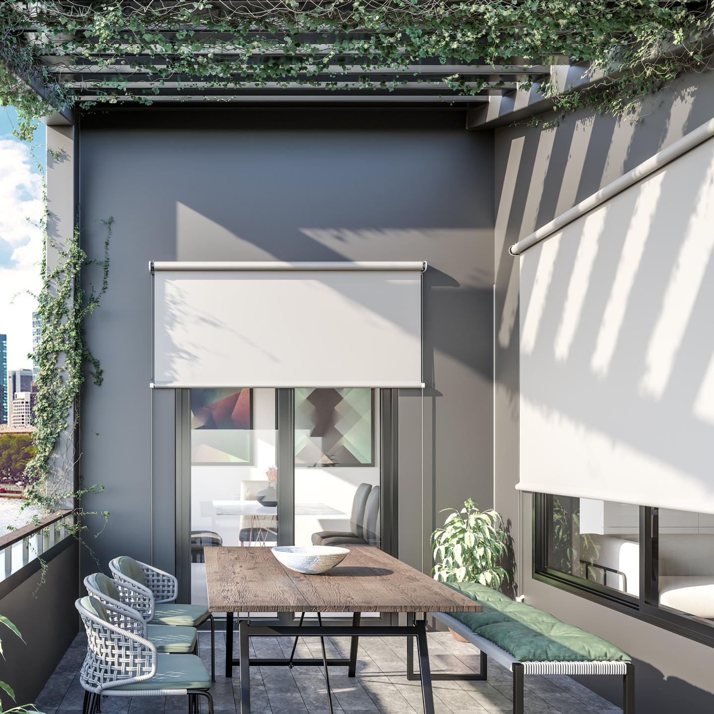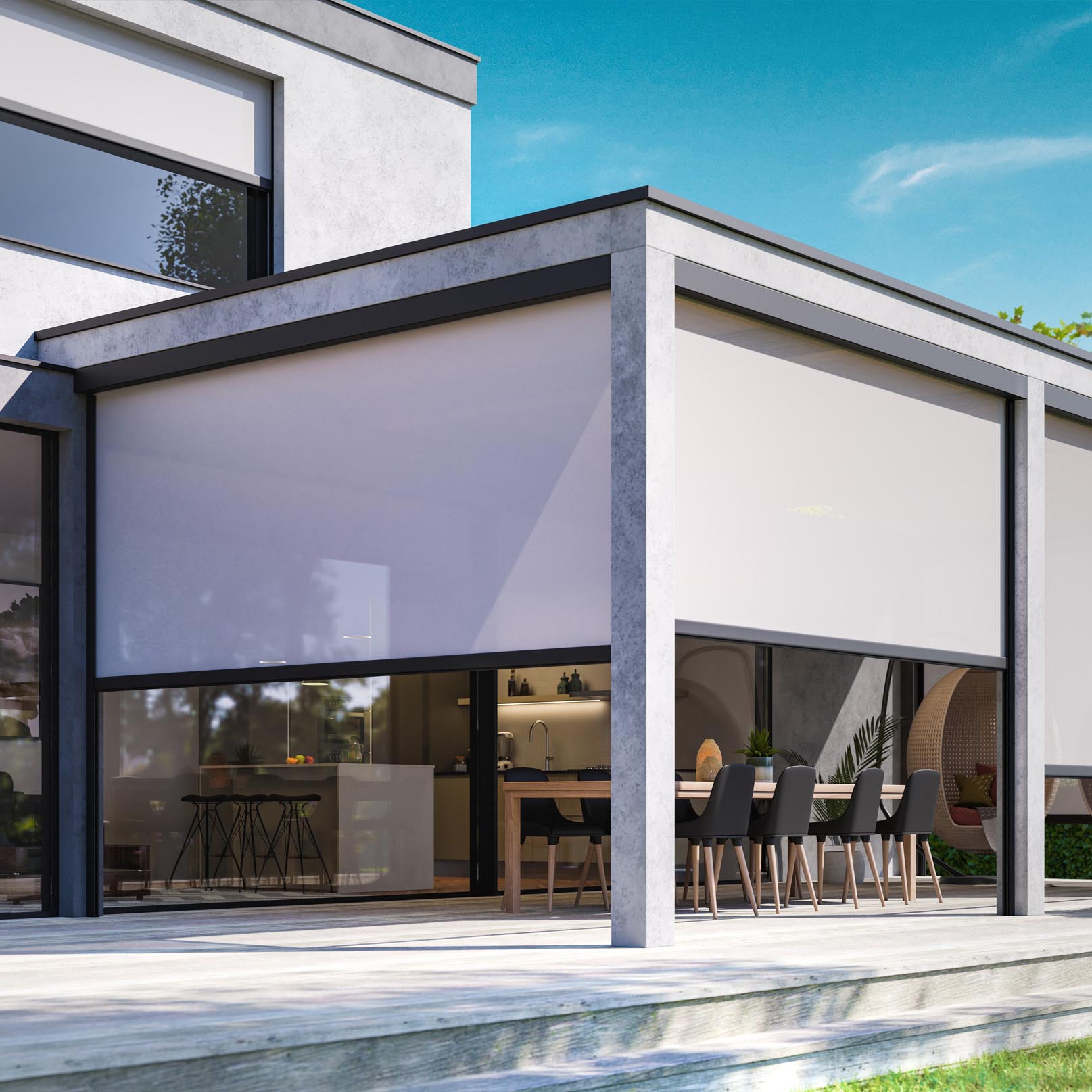 Gli automatismi, garantiti da un partner d’eccellenza come Somfy, rendono la tenda dinamica per un maggiore comfort in totale sicurezza, come il radiocomando che permette di alzare ed abbassare la tenda senza aprire la finestra o sporgersi verso l’esterno.