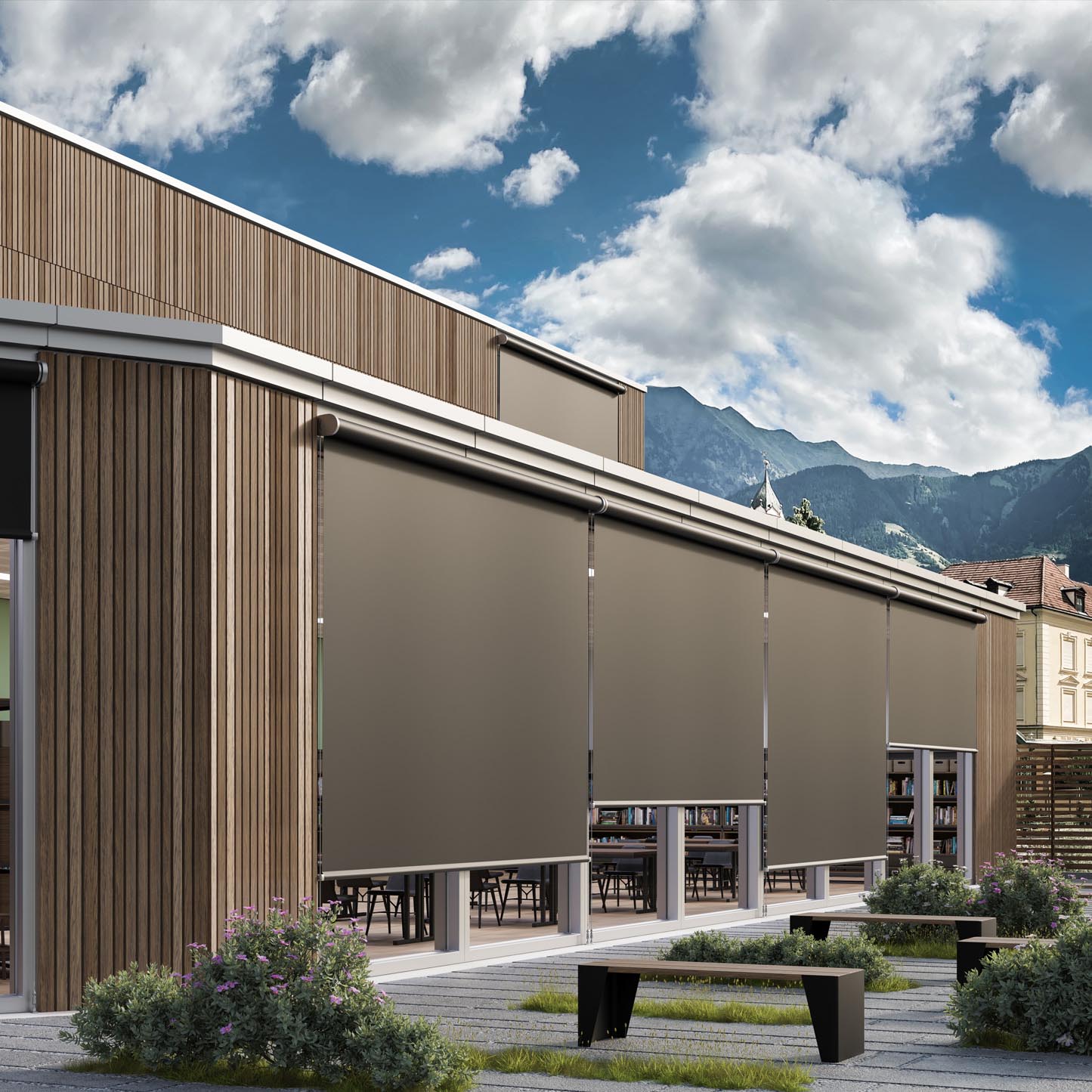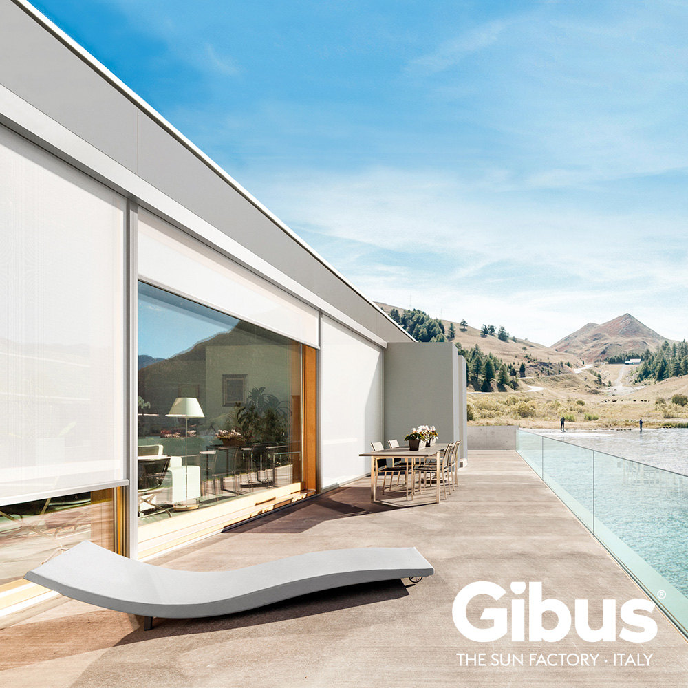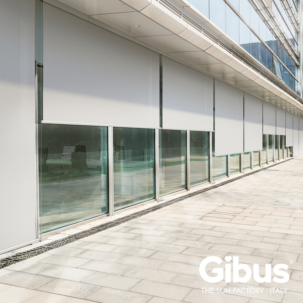 La tenda sole a caduta è come uno scudo leggero che scende sulla vetrata a proteggere da calore e luce.